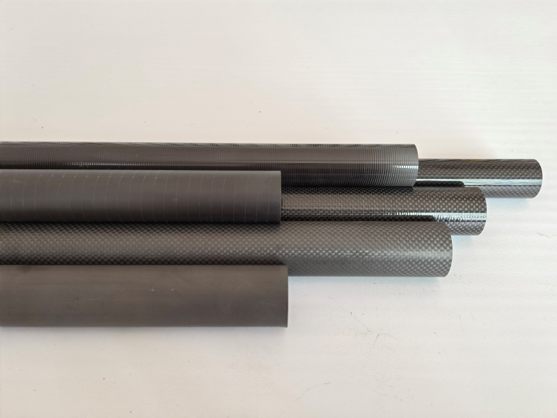 Rolled carbon fiber tubes have various surface styles available: